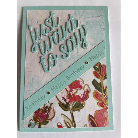 Blumige Geburtstagskarte in frischen Farben, im unteren Teil mit einer in Gold bedruckten Folie überlagert.