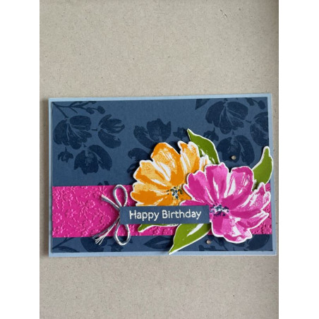 Blumiger Geburtstagsgruss mit Blüten in kräftigen Farben.