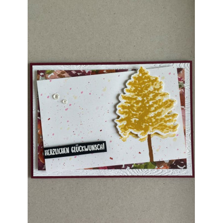 Herbstliche Glückwunschkarte mit einem Hintergrund in Baumprägung und verzierter Innenseite.