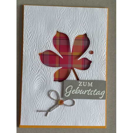 Herbstliche Geburtstagskarte mit Baumprägung.